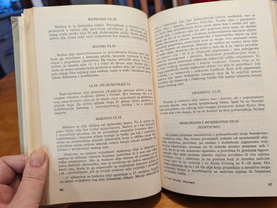 Vrijedna stručna knjiga jer sadrži slikarske recepture i opise koji su već i zaboravljeni.