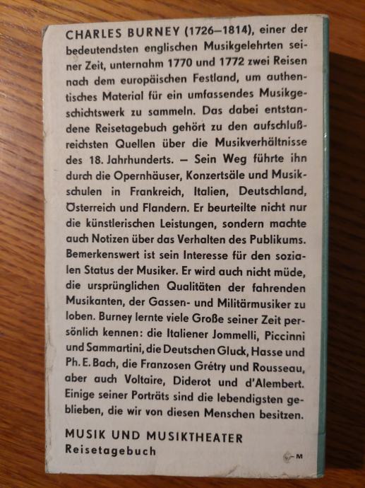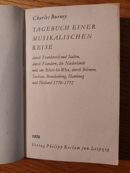 - Tagebuch einer musikalischen Reise durch Frankreich und Italien, durch Flandern, die Niederlande und am Rhein bis Wien, durch Böhmen, Sachsen, Brandenburg, Hamburg und Holland 1770-1772. (Herausgegeben von Eberhard Klemm)