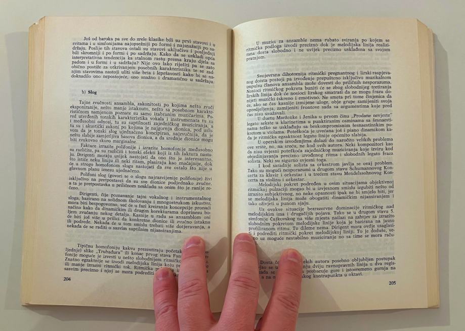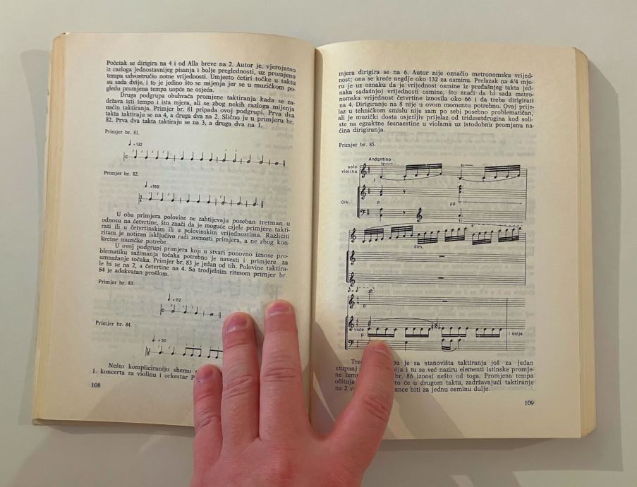 Iz uvoda: “…Uloga dirigenta se ne razlikuje bitno od uloge ostalih interpretatora. Sa značajnom nadopunom da dirigent upravlja velikim ansablima i institucijama koje čine temelj muzičkog života jedne sredine, da su u te institucije uloženi znatni napori i još znatnija materijalna sredstva….”