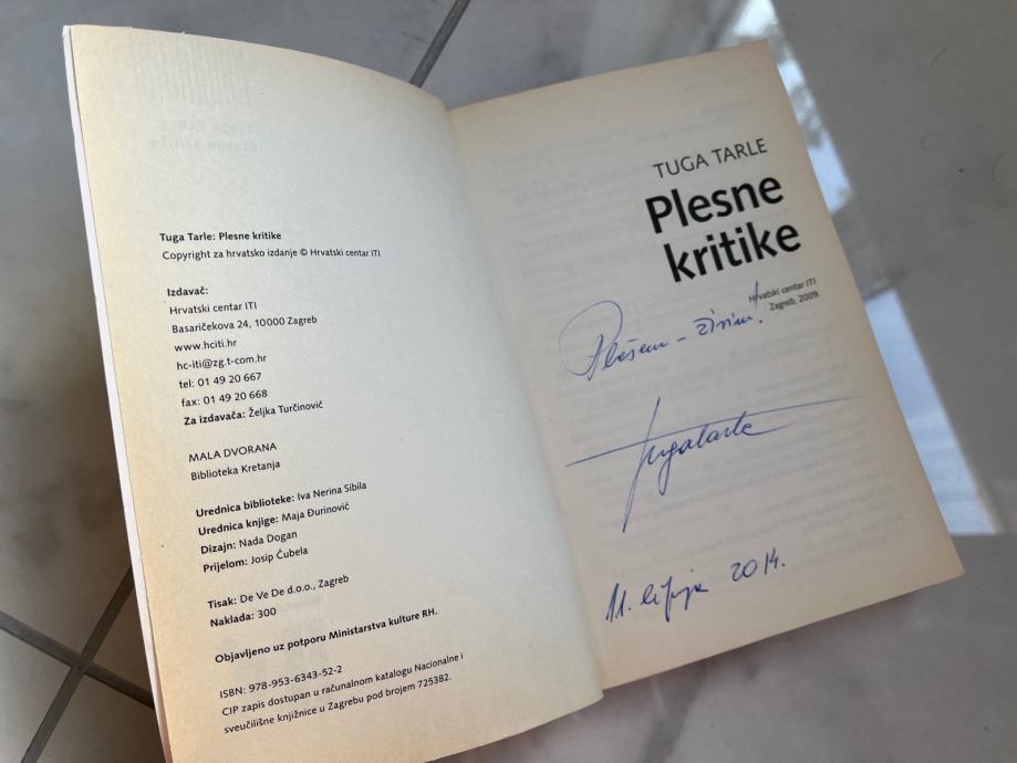 Izborom plesnih kritika Tuge Tarle biblioteka Kretanja otvara ediciju Mala dvorana. Riječ je o pedesetak esejističkih prikaza, kritika i osvrta koji oslikavaju otprilike jedno desetljeće zagrebačke plesne scene, s akcentom na baletnim događajima u HNK u Zagrebu (između 1975. i 1985.). Kako je autorica završila baletnu školu, i diplomirala filozofiju i komparativnu književnost, a kao plesač djelovala u KASP-u Milane Broš (poznatom po avangardnim postavkama) tekstovi su i kompetentni i silno angažirani u želji: s jedne strane društvene promocije plesne umjetnosti, a s druge osuvremenjivanja repertoara. Zapravo je Tarle otvorila pravi plesni ”polemički poligon” kako se i zvala rubrika u časopisu Oko u kojoj je objavila više tekstova.