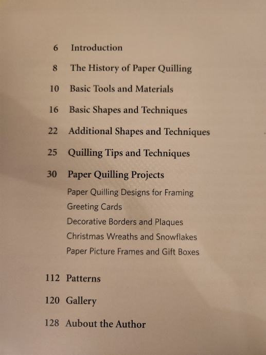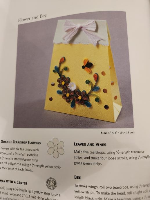 Knjiga prikazuje tehnike quillinga za čestitke, darove, slike...