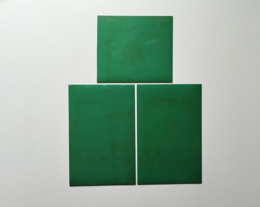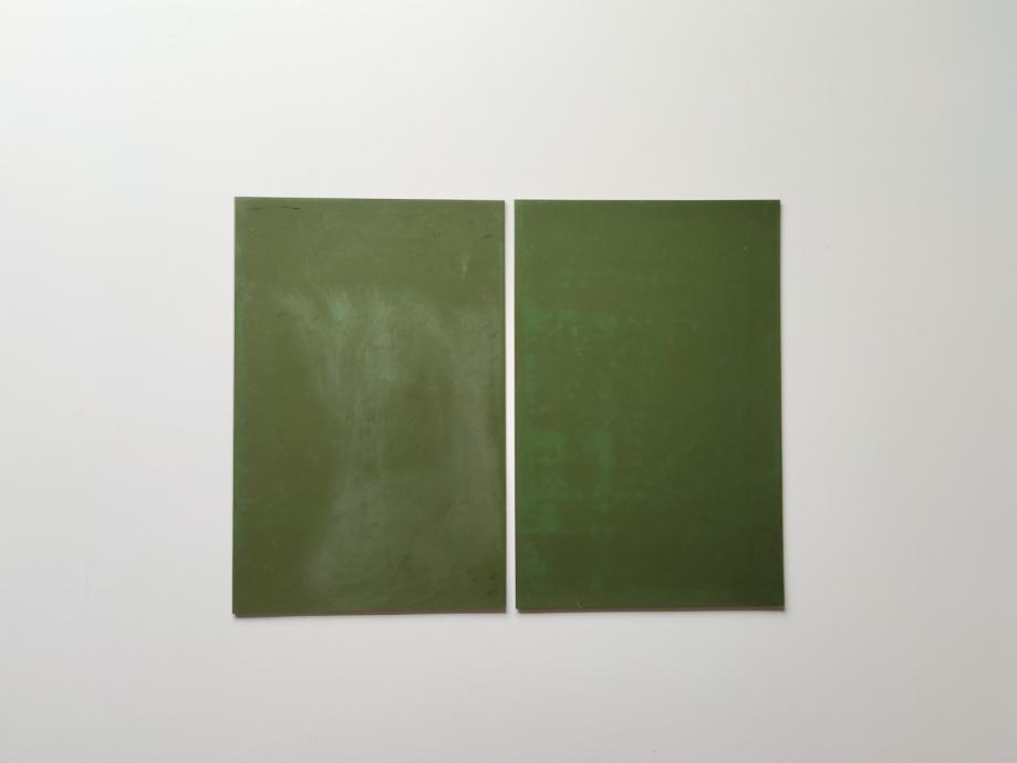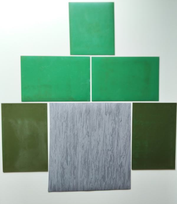 Pet komada linoleuma (različite nijanse zelene i čvrstoća).