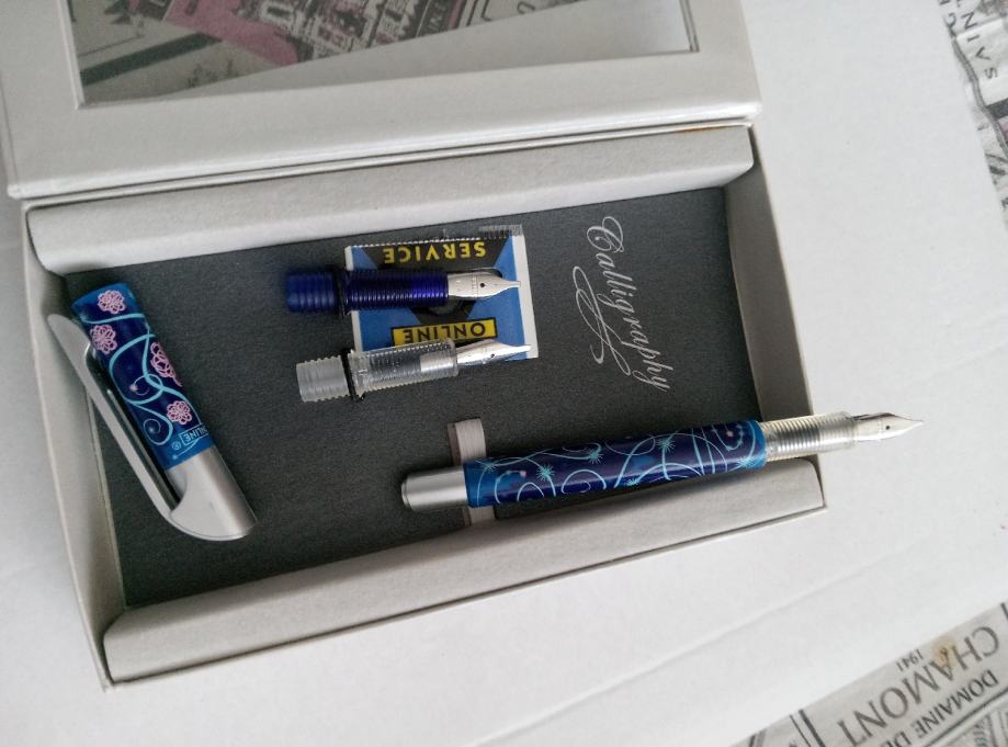 Online nalivpero za kaligrafiju sa produžetcima na slikama ne korišteno u originalnoj ambalaži.Praktično i lagano kad Vam se neda nositi veći full set u torbi.Razlog prodaje-duplikat je.Zamjene ne trebam.Cijena piše.Komuniciram SMS om.