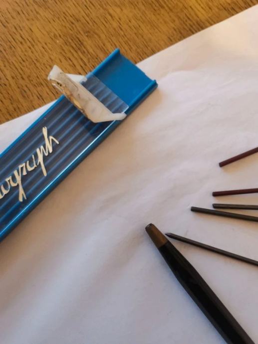 Olovke vintage Ex Yu - stara mehanička tehnicka olovka za mine,kutijica za mine, 4 grafitne obične olovke