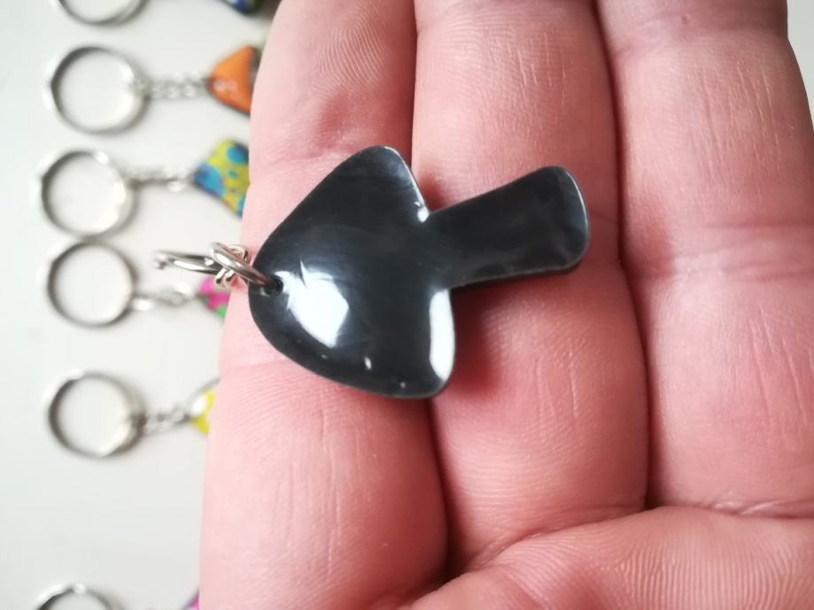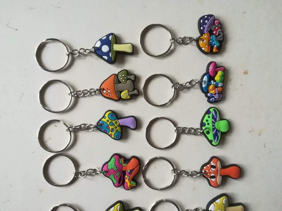 Privjesci od gume sa prikazom šarenih gljiva. Novi su, nekorišteni. Jedan košta 5e, a svi zajedno 30e. Cijena je fiksna. Na sms nemogu odgovoriti, najbolje bi bilo da me nazovete 099 687 5657 ili pošaljete poruku preko Njuškala.