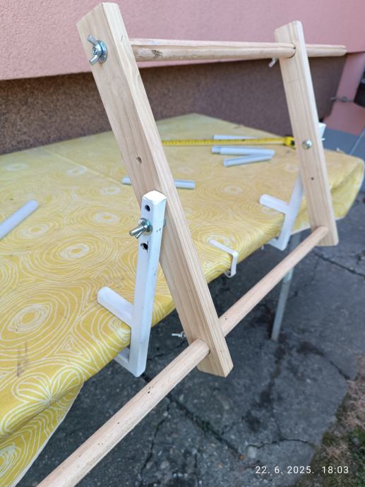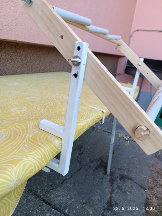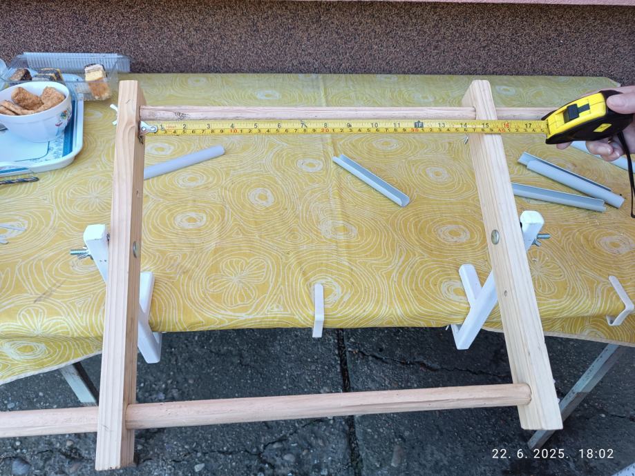 Okvir je drveni a stalak za okvir je metalni i pričvršuje se stol podesivim vijcima.