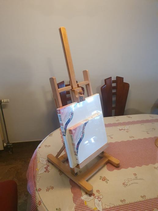 Sa stalkom dolaze 2 platna za slikanje. (30x30cm i 18x24cm)