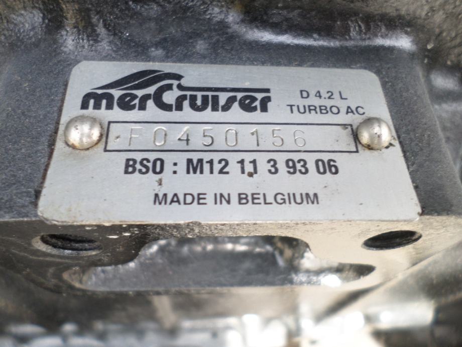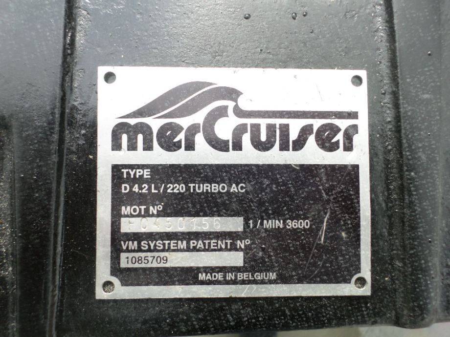 Mercruiser ( VM baza ) 4.2 turbodiesel sa 220 ks, rednih 6 cyl , upravo napravljen redovan servis ( ulje, filteri, remeni , impeler) , turbina prekontrolirana i očišćena, kontrola injektora i pumpe, servis analsera i alternatora. Motor ima zvono za mercruiser z pogone Bravo , vrlo lako ga je prilagodit za bilo koju kopču . Idealno zamjenjuje benzince 5.0, 5.7 i 7.4 sa znatno jačim okretnim momentom i bitno manjom potrošnjom, motor je spreman za ugradnju i prodaje se sa 6 mjeseci garancije .
