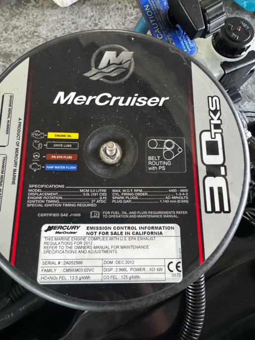 Prodaje se odlican motor Mercruiser 3.0 TKS. Motor je bas vaden iz broda, nema nikakvih mana i jos je u originalnom stanju. Nista farbano ili koregirano. Ima dokumente za upis.