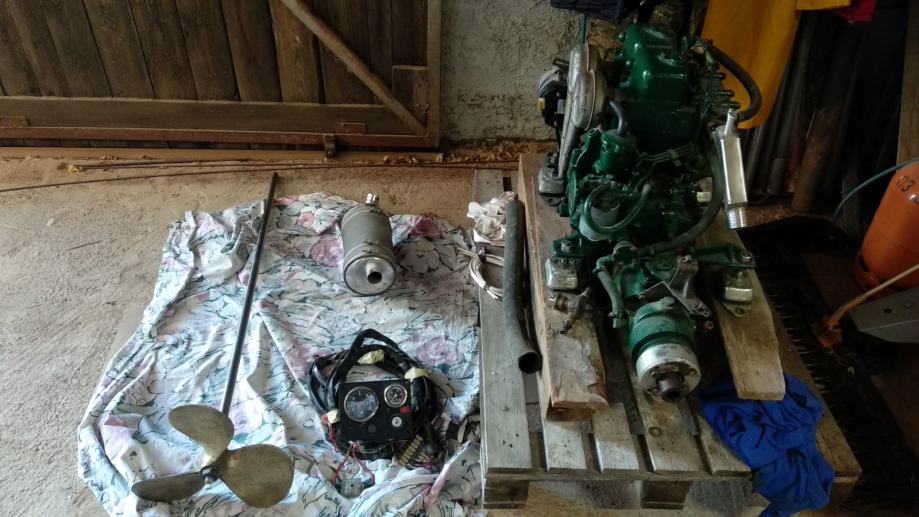 Volvo Penta MD11C, 2 cilindra, 23KS (17 KW), indirektno hlađenje, alternator (mjenjan prije 3 godine), instrument ploča, kopča, osovinski vod, propeler i lonac auspuha.