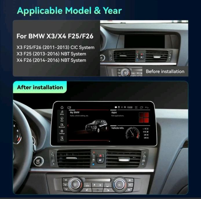 Primjenjivi modeli za BMW X3 F25 (2011-2013), X4 F26 (2011-2014) sa CIC sustavom.
