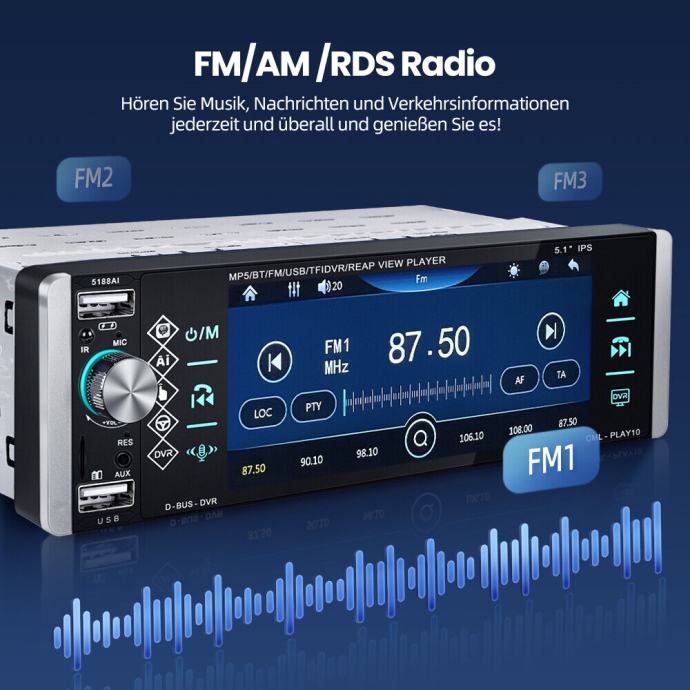 FM/AM/RDS Frekvencija: 87,5MHz~108MHz, 522KHz~1620KHz