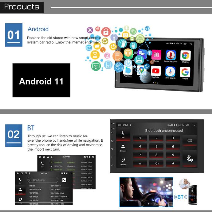 2 Din Andrioid 11 GPS WiFi Auto radio, jača verzija sa 2Gb rama