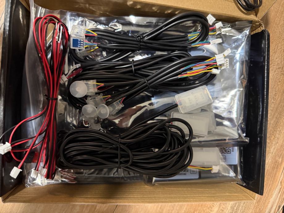 Bluetooth ambijentalna rasvjeta, master modul bežićno komunicira s 4 slave modula u vratima. Upravljnje mobitelom ili skrivenim gumbom.