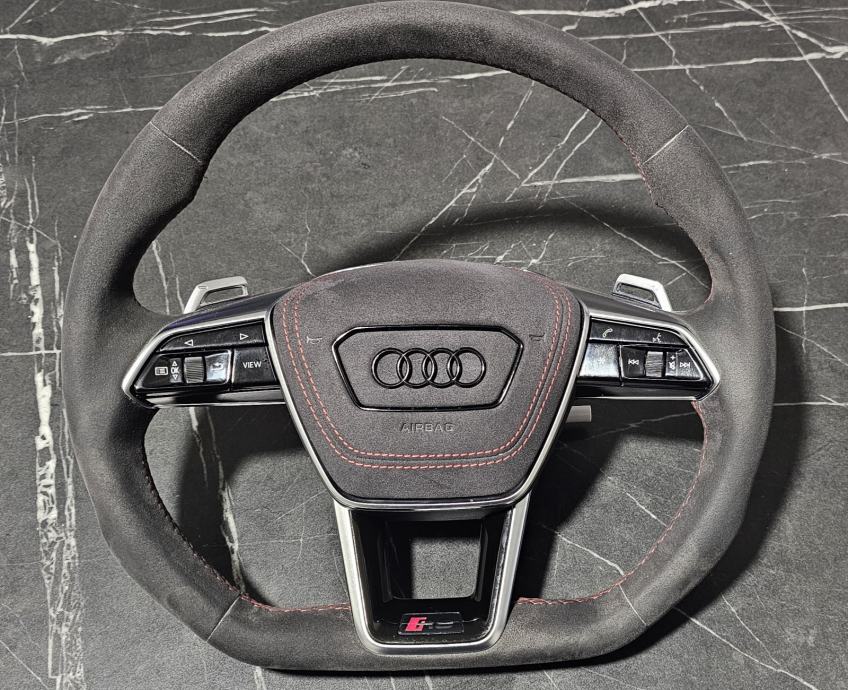 Volan je bio na Audi RS7 C8. Volan je OEM alcantara + airbag cover alcantara + gloss black (možete dobiti i original plastični cover)