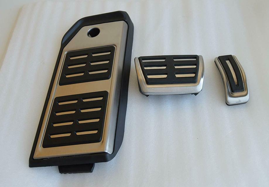 Novi set ukrasnih sportskih pedala (papučica, poklopaca, navlaka) za automatski mjenjač (automatik): naslon za nogu, gas i kočnicu. Ukrasne papučice se jednostavno montiraju. Bez ikakvog bušenja. Potrebno je samo skinuti postojeće pedale i zamijeniti ih ovima (na slikama imate upute). Možemo Vam poslati i video kako to uraditi. Dizajn je takav da onemogućuje klizanje po papučicana, Non-slip dizajn.