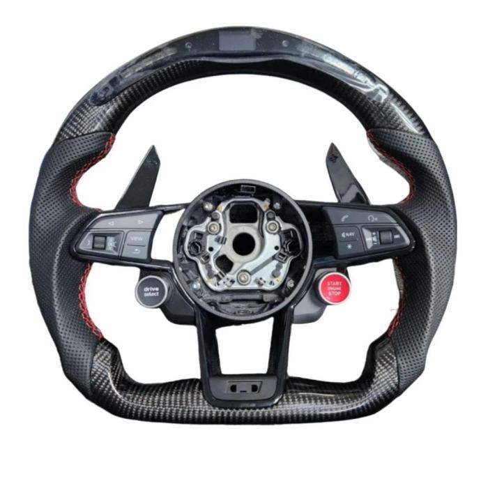 Dajte svom Audiju sportski izgled s gumbima na volanu u stilu R8. Gumbi nude jednostavno upravljanje važnim funkcijama izravno na volanu i dodaju vizualni naglasak inspiriran Audijem R8. Savršen su dio za tuning za svakoga tko želi izvući maksimum iz svog Audija.