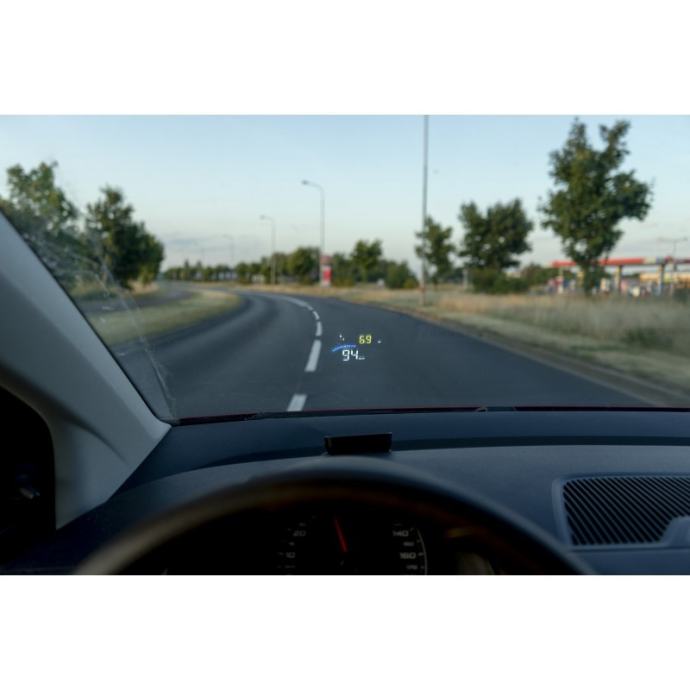 Prikaz brzine vozila, okretaja, voltaže, temperature vode, smjera kretanja, visine i gps koordinata na vjetrobranu vozila. Mogućnost podešavanja upozorenja. Jednostavna ugradnja – spajanje na OBD konektor vozila.