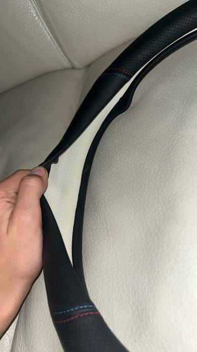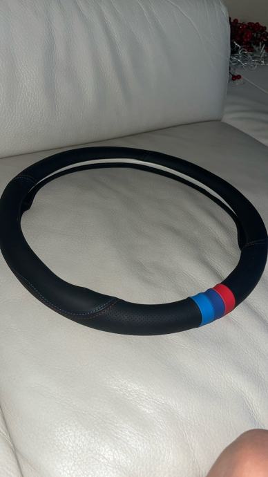 Kožna navlaka za volan BMW moze se koristit i na drugim brendovima auta unutarnji promjer 32 cm a vanjski 38 cm