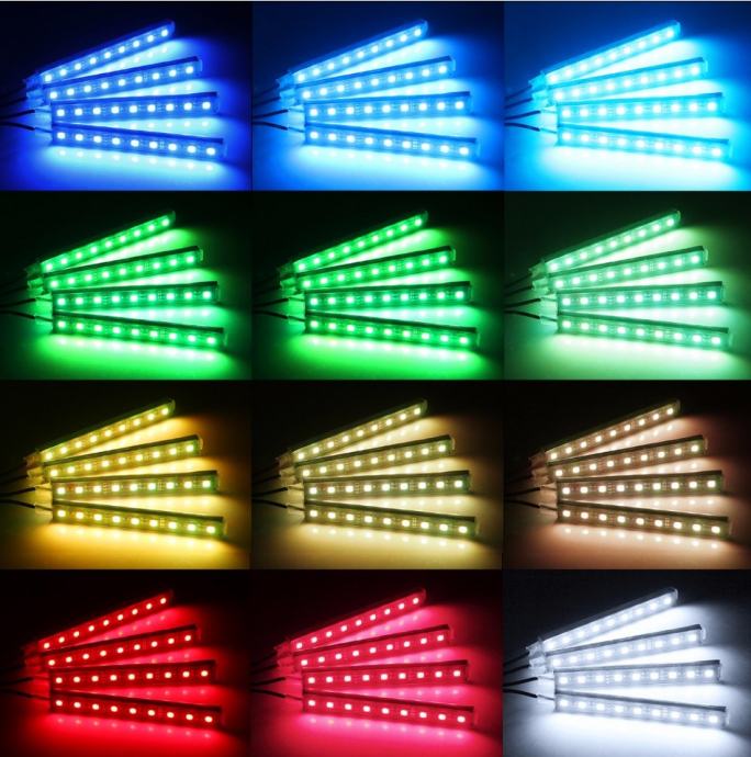 Led lampice za unutrašnost vozila -9LED-višebojne+daljinski - model 3