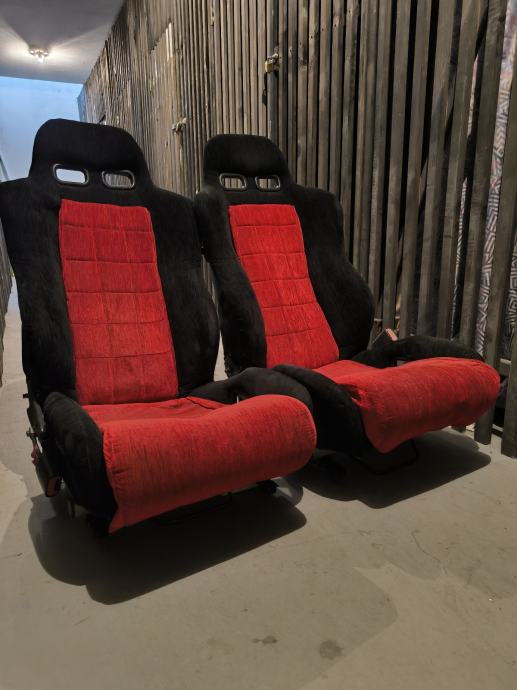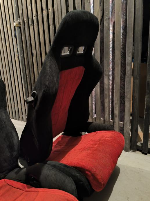 Na prodaju preklopni sicevi presvučeni u crno-crvenu kombinaciju. Stanje 7/10, nedostaju pokrivne plastike na par mjesta i tkanina pohabana na vozačevom sjedalu.