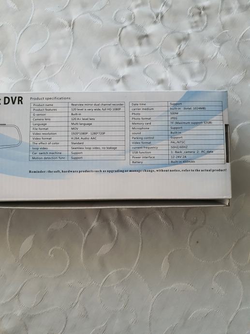Retrovizor sa prednjom kamerom prodajem. Karakteristike na pakiranju. Cijena 15 EUR. Mob 098 350 364