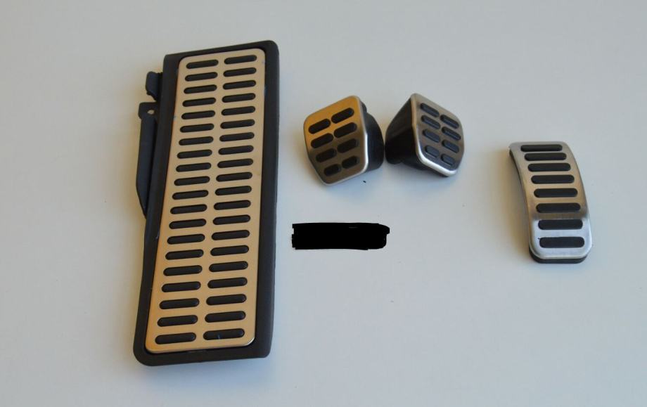 Novi set ukrasnih sportskih pedala (papučica, poklopaca, navlaka) za manualni mjenjač : naslon za nogu, gas, kvačilo i kočnicu. Ukrasne papučice se jednostavno montiraju. Bez ikakvog bušenja. Potrebno je samo skinuti postojeće pedale i zamijeniti ih ovima. Možemo Vam poslati i video kako to uraditi. Dizajn je takav da onemogućuje klizanje po papučicana, Non-slip dizajn.