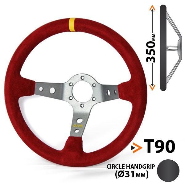 Sportski trkaći duboki volan RRS brušena koža 350mm 90mm CRVENI