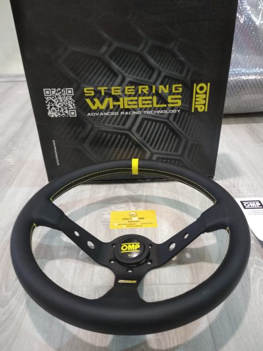 Trkaći sportski volan OMP Corsica obićna koža 350mm 3 kraka 90mm dubina.