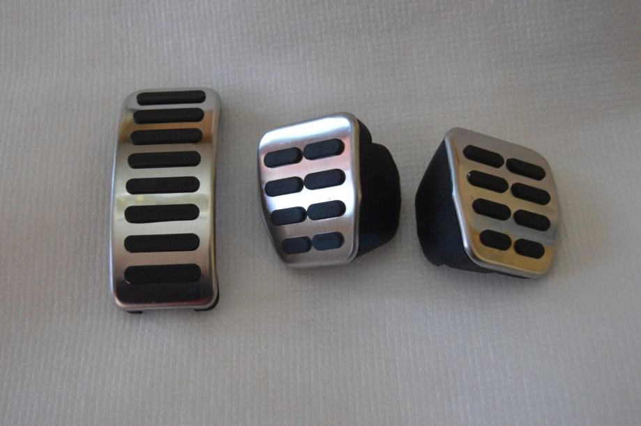 Novi set ukrasnih sportskih pedala (papučica, poklopaca, navlaka) za manualni mjenjač : gas, kvačilo i kočnicu. Ukrasne papučice se jednostavno montiraju. Bez ikakvog bušenja. Potrebno je samo skinuti postojeće pedale i zamijeniti ih ovima. Možemo Vam poslati i video kako to uraditi. Dizajn je takav da onemogućuje klizanje po papučicana, Non-slip dizajn.