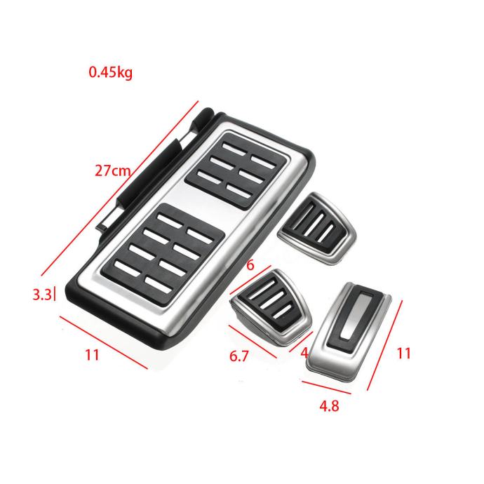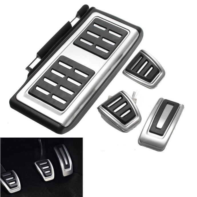 Novi set ukrasnih sportskih pedala (papučica, poklopaca, navlaka) za manuelni mjenjač: naslon za nogu, gas, kvačilo i kočnicu. Ukrasne papučice se jednostavno montiraju. Bez ikakvog bušenja. Potrebno je samo skinuti postojeće pedale i zamijeniti ih ovima (na slikama imate upute). Možemo Vam poslati i video kako to uraditi. Dizajn je takav da onemogućuje klizanje po papučicana, Non-slip dizajn.