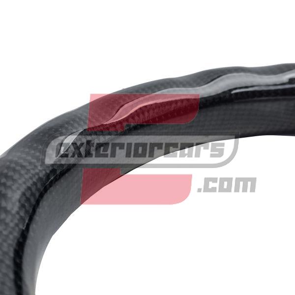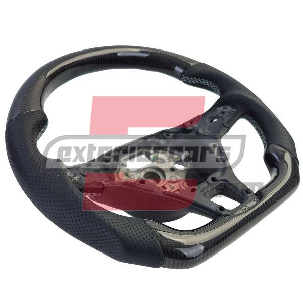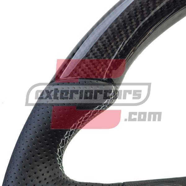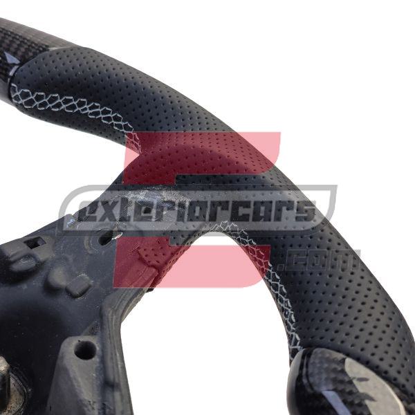 – Ekskluzivni materijali: Upravljač je izrađen od kombinacije pravog karbona i visokokvalitetne perforirane kože. Ovi materijali ne samo da daju elegantan izgled, već također osiguravaju ugodan osjećaj i bolje držanje.