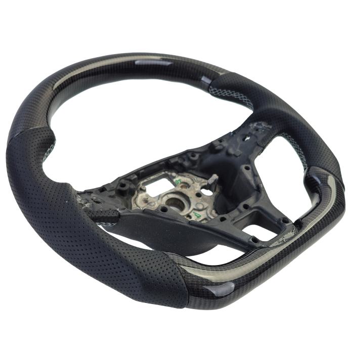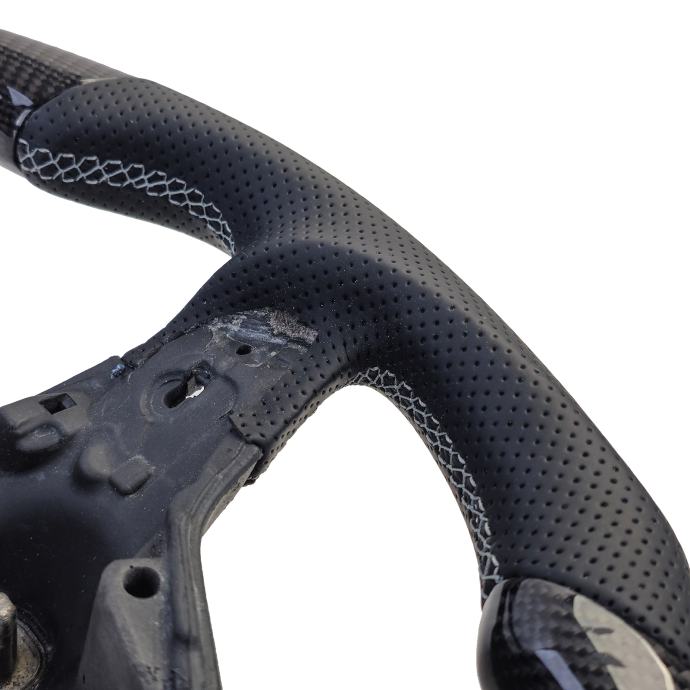 - Ekskluzivni materijali: Upravljač je izrađen od kombinacije pravog ugljika i visokokvalitetne perforirane kože. Ovi materijali ne samo da daju plemenit izgled, već pružaju i ugodan osjećaj i bolje prianjanje.