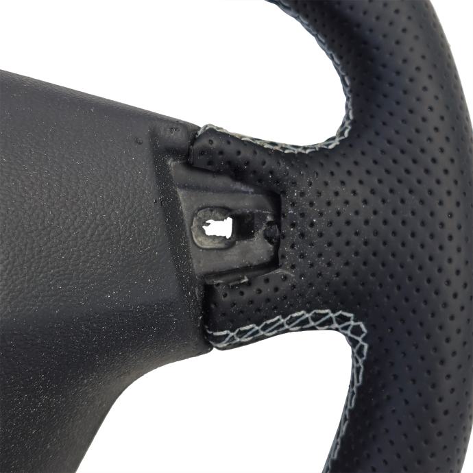 - Originalni upravljač kao osnova: Za ovaj sportski upravljač korišten je originalni VW T6 upravljač. To znači da se originalna obloga upravljača s kontrolama i zračnim jastukom može lako preuzeti sa starog upravljača. To osigurava jednostavnu i sigurnu instalaciju.