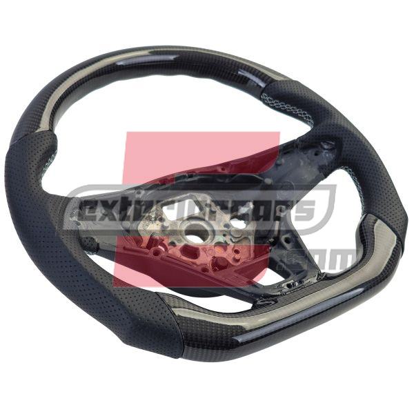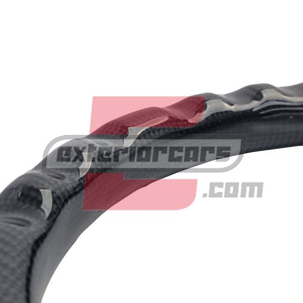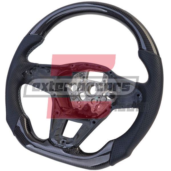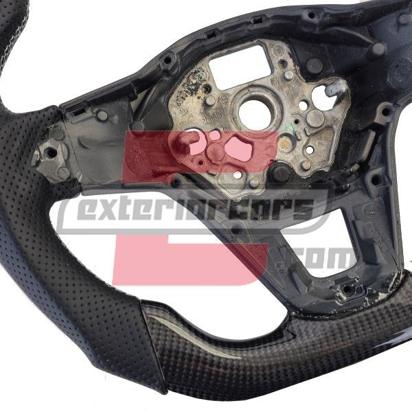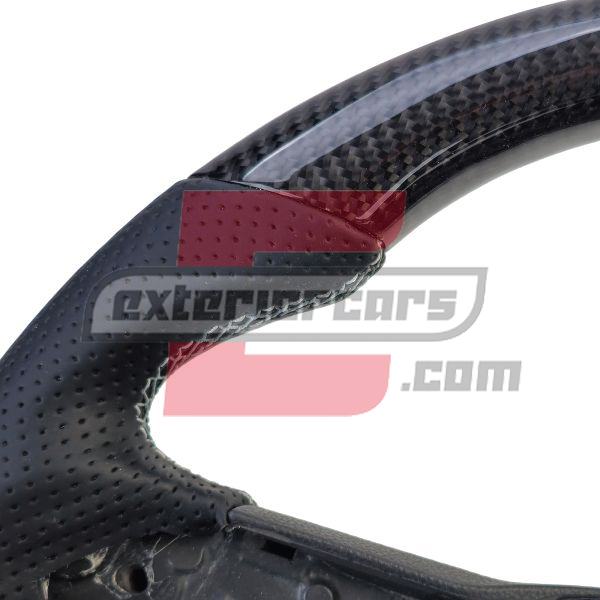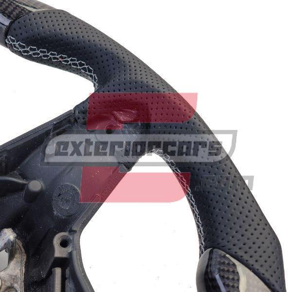 – Ekskluzivni materijali: Upravljač je izrađen od kombinacije pravog karbona i visokokvalitetne perforirane kože. Ovi materijali ne samo da daju elegantan izgled, već također osiguravaju ugodan osjećaj i bolje držanje.