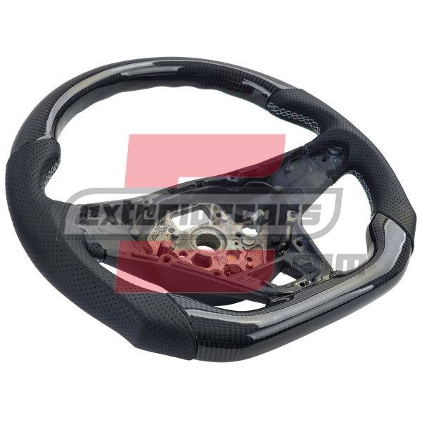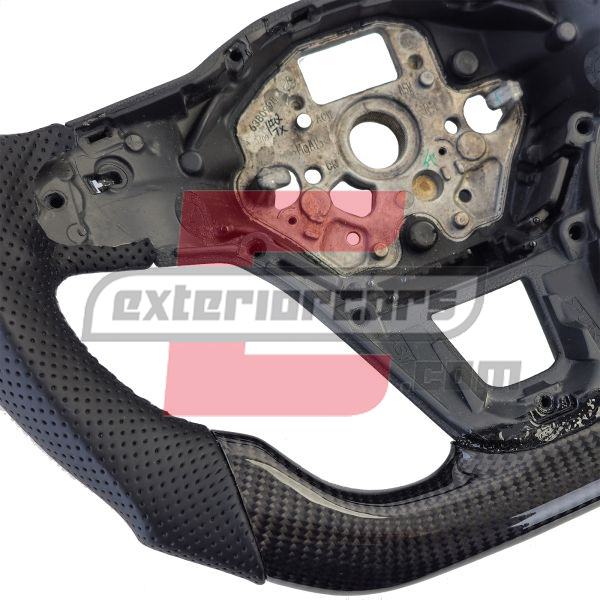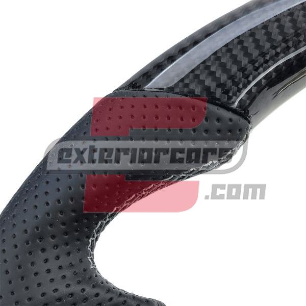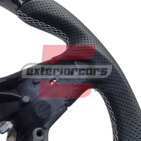 – Ekskluzivni materijali: Upravljač je izrađen od kombinacije pravog karbona i visokokvalitetne perforirane kože. Ovi materijali ne samo da daju elegantan izgled, već također osiguravaju ugodan osjećaj i bolje držanje.
