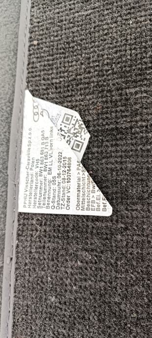 Audi A4 B9 tekstilni tepisi