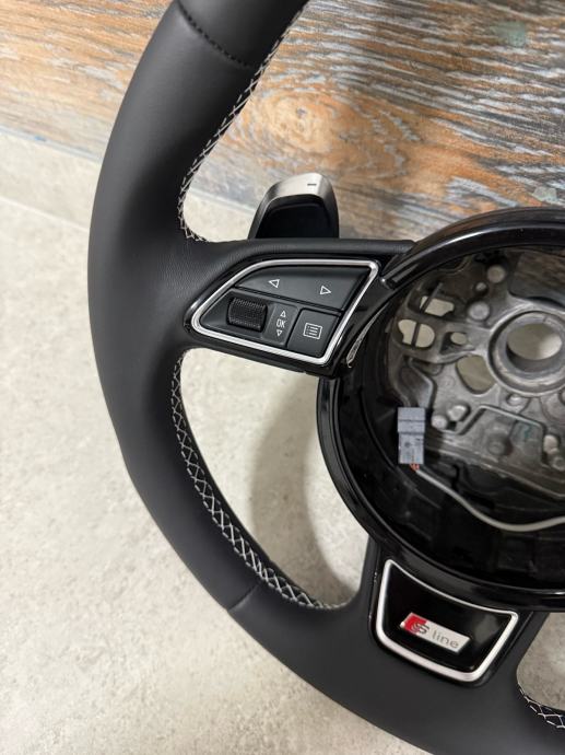 Prodajem kozni mf volan sa F1 shifterima od Audi S6 4G 2011-18, odgovara i na druge modele kao npr. A7, A8, Q5, Q3, A3, A4, A5, S4, S5, S8…