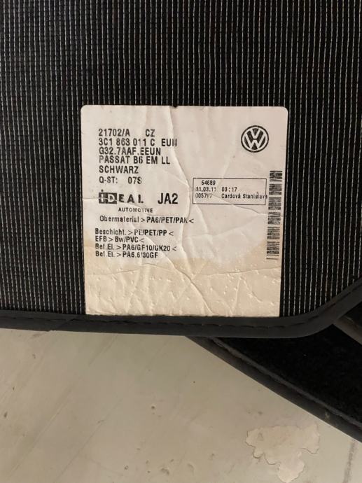 Prodajem auto tepihe za Passat iz 2013, korišteni svega 2 ljetne sezone. Cijena 30€.