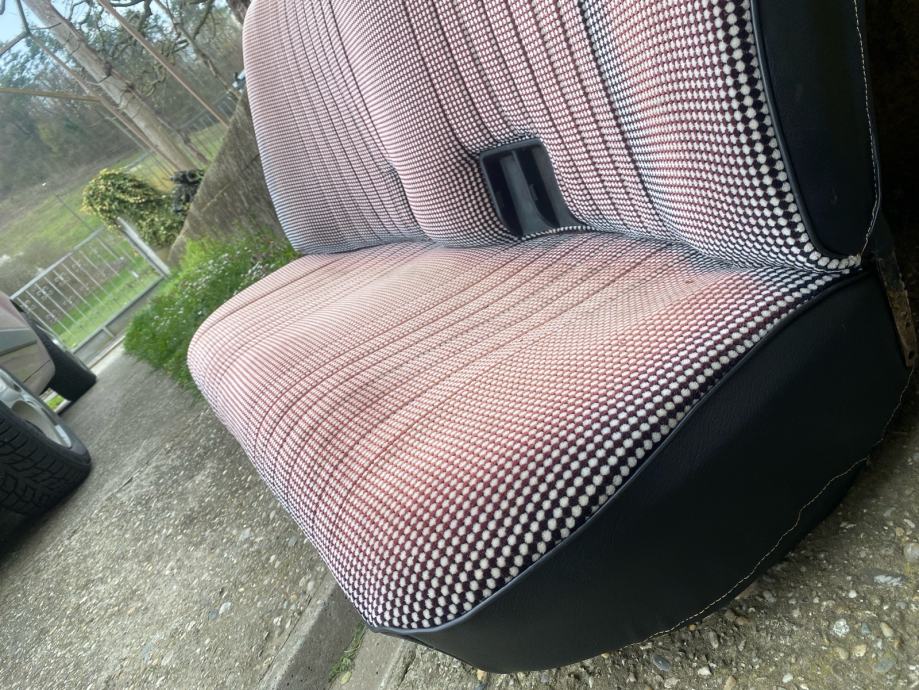 Sjedala imaju orginalne presvlake koje su u super stanju, iz nutra su klasinca siva sjedala sa ostecenim platnom