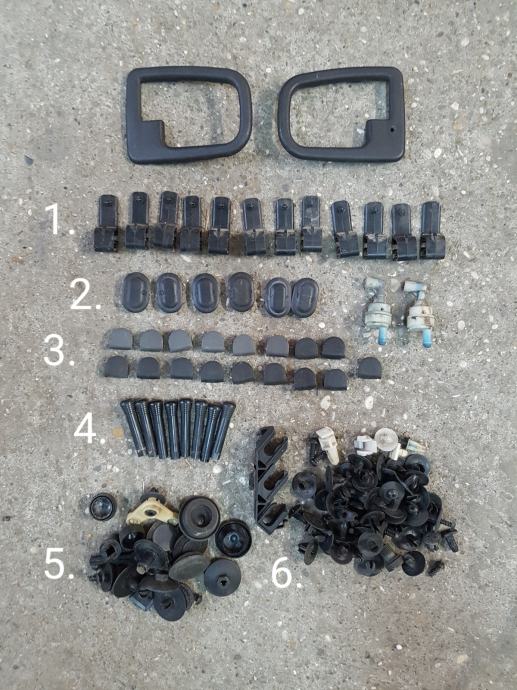 3. plastični poklopci tapecirunga vrata, ispod kojih su šarafi za skidanje tapecirunga, crni ili sivi - 1,50 € / komad