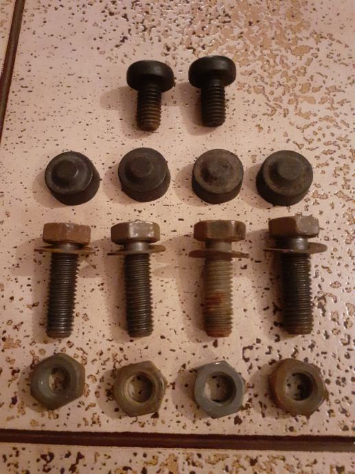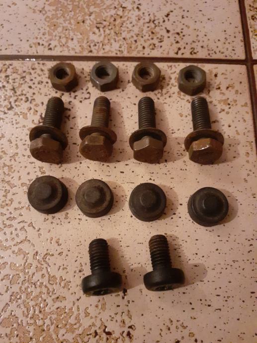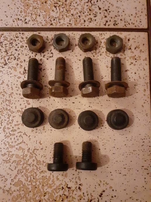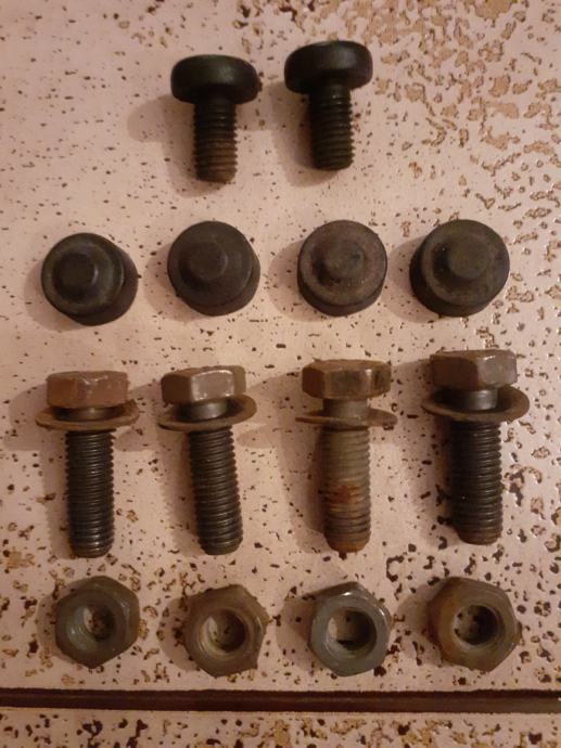 Prodajem komplet šarafe (6 komada), matice (4 komada) i plastične kapice / poklopce šarafa (4 komada) za prednja sjedala i prednje pojaseve, za e36. Bili su u limuzini iz 1995. godine i u odličnom su stanju. Kapice bez puknuća ili napuknuća, navoji na šarafima i maticama bez oštećenja, svi ispravni i odlično drže. Prodaje se isključivo sve u kompletu, dakle ništa ne prodajem po komadu. Original BMW.