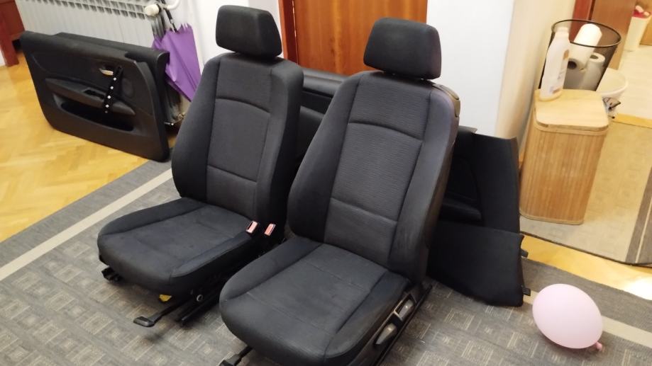 BMW e82, serija 1 coupe, komplet sjedala, prednja i zadnja, te bočne obloge. Sjedala su kompletna sa zračnim jastucima i zatezačima pojasa, obloge vrata sa zvučnicima, sve originalno izvrsno stanje. Informacije pozivom na 092/327-6597.