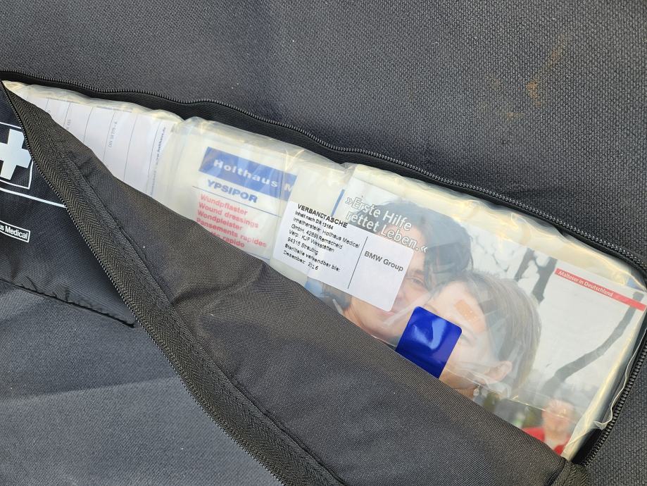 Original BMW F11 torba prve pomoci koja stoji u haubi bunkera