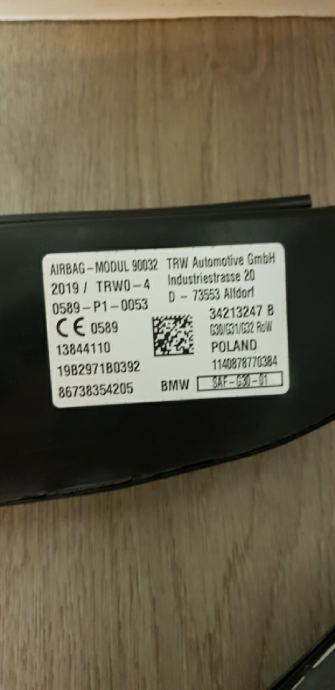Kao u naslovu airbag prednjih sjedala za BMW G31.