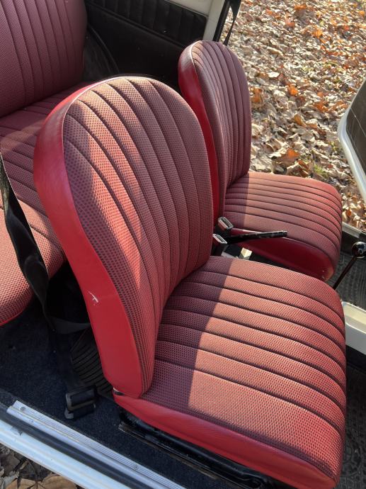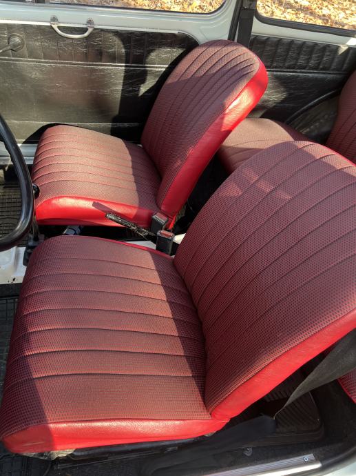 Prodajem komplet prednja i zadnja sjedala u crvenoj boji, te tapacirunge za prednja vrata i zadnje stranice, u crnoj boji.