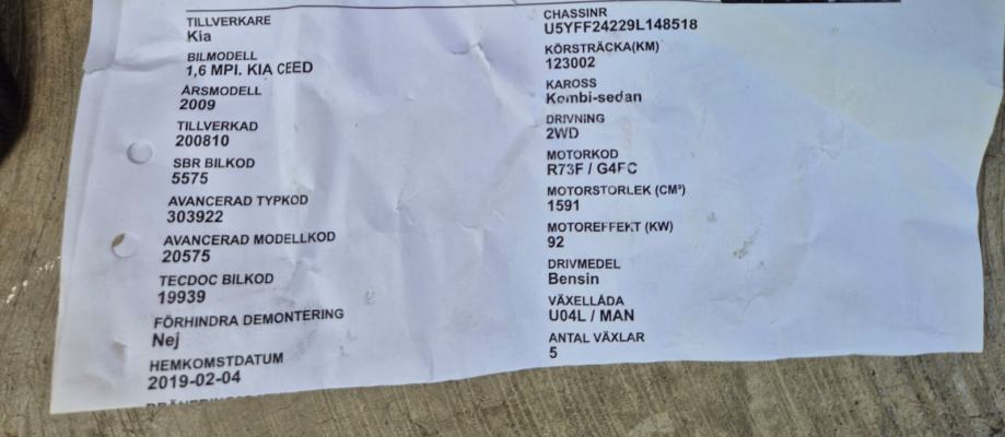 Komplet airbag instrumental tabla Kia Ceed 2007-2012 god volana pojasevi