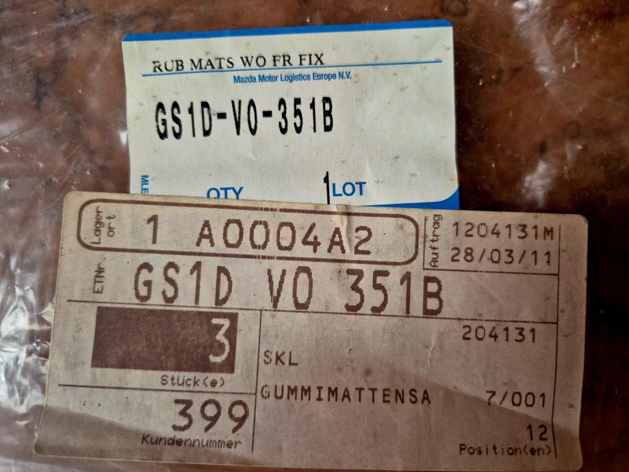 Originalne nove gumene prostirke , tepisi, za Mazdu 6 2003-2012, set od 4 komada, s originalnim kopčama za pričvršćivanje i logom Mazda 6.