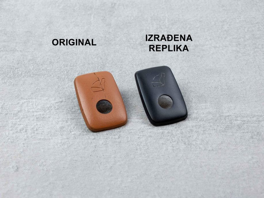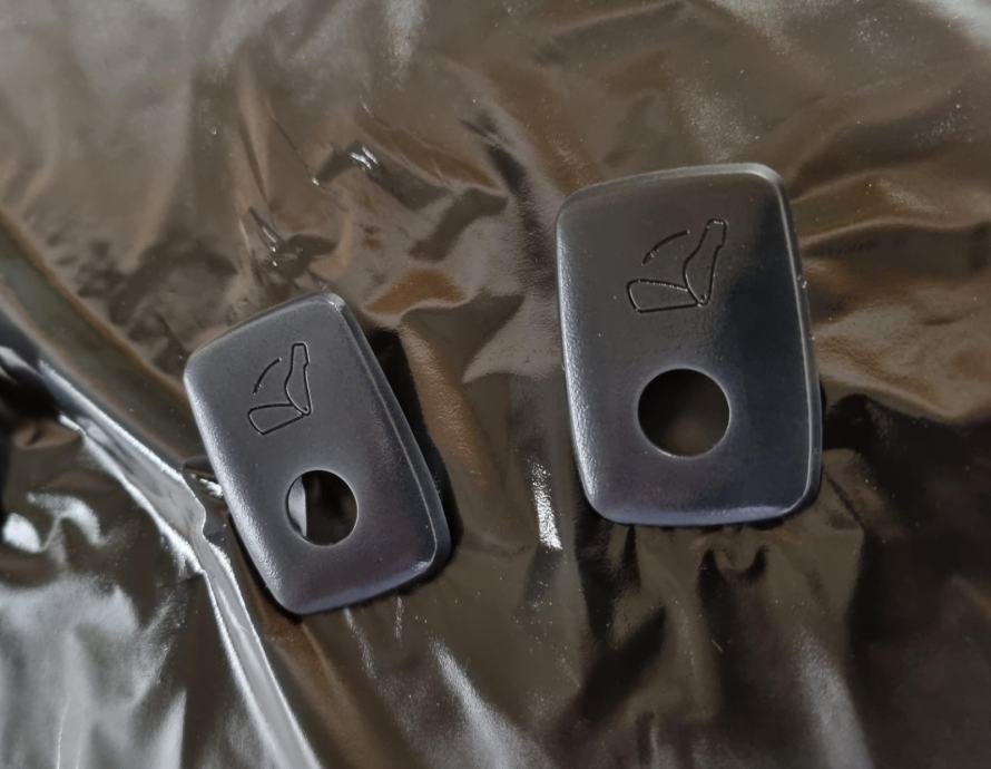 Plastika oko gumbica za sklapanje sjedala za 123 kupe. Novo izrađena replika. Kvačenje isto kao u originalu s kopčama sa stražnje strane.