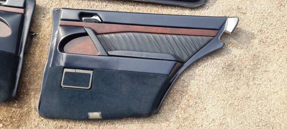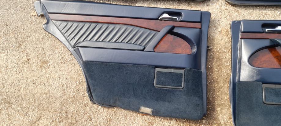 Mercedes s klasa w140 1992g oplate vrata tapecirung komplet 4 komada s drvom kozom kvakom 100 eura oplate su ok stanje osim straznjih iz nutra karton koji je iznad praga malo se popigao trebalo bi ga izravnat drvo i koza lice ok. oplate su kozne i u tamno plavoj boji sa tamnim drvom mahagoni armatura u plavoj boji sa velikom ladicom 100 eura ...info 095 577 9398